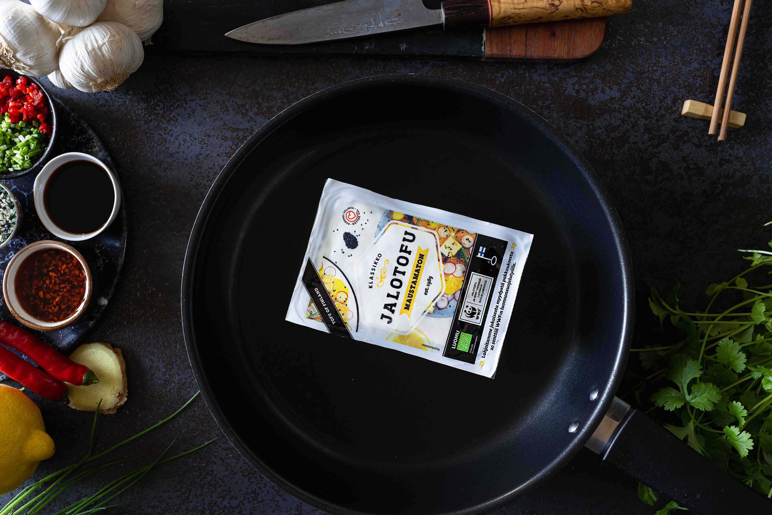 Oy Soya Ab:n Tammisaaressa valmistettua luomutofua, jota tosin ei vielä tuolloin myyty Jalotofu-nimellä kuten nyt.